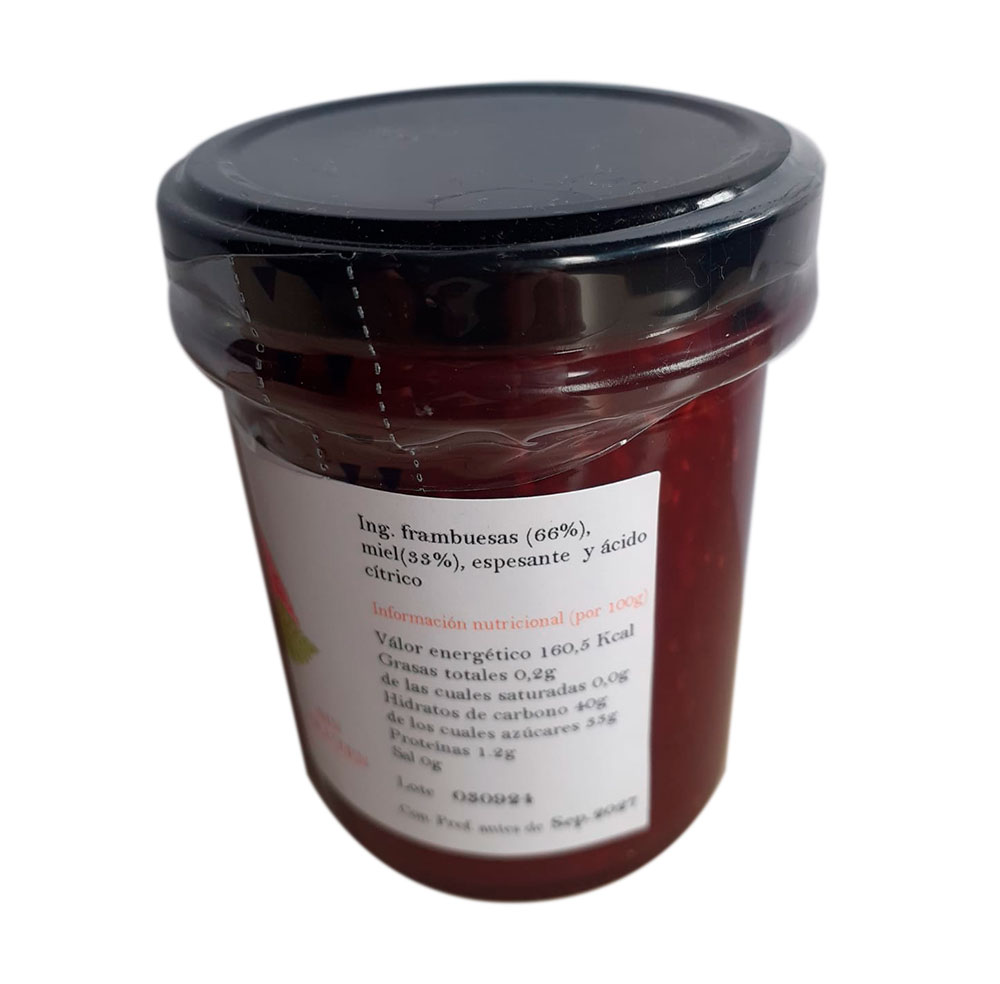 Ingredientes: Frambuesa (66%) Miel (33%) , espesante y ácido cítrico.